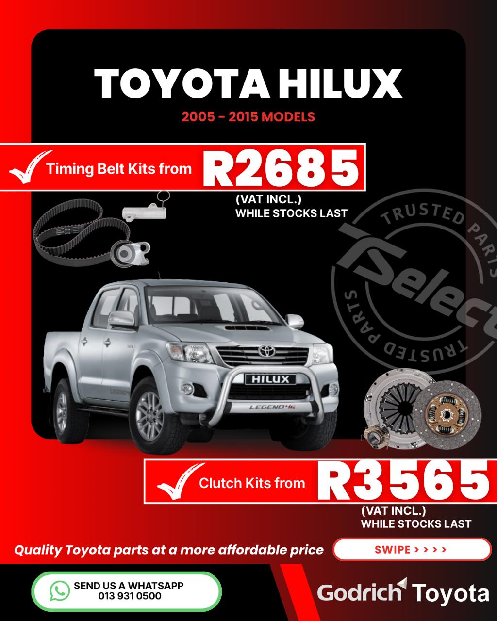 Timing belt kits from R2685 (VAT Incl.) While stocks last